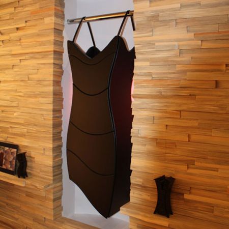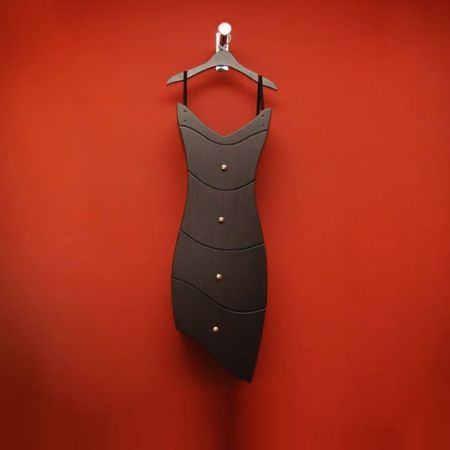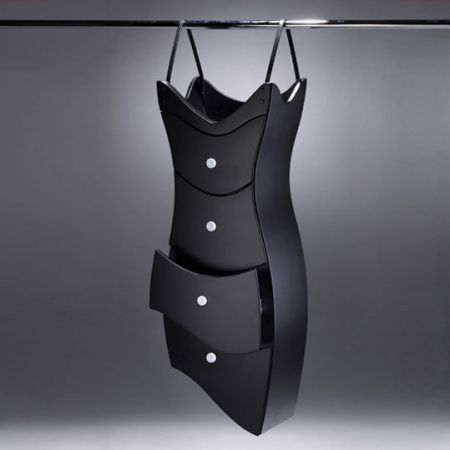 这款黑色吊带裙,其实是一个柜子。设计师别出心裁地采用了女性裙装的样式与柜子组合在一起,设计时尚大胆、装饰性十足,让人耳目一新。独特的“吊带”设计,还方便这款柜子摆放在任何地方。