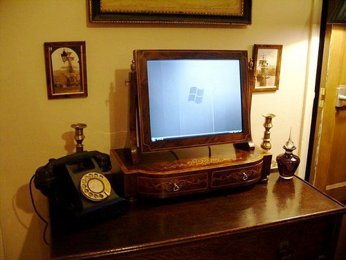 并不是所有人都对现在大红大紫的平板电脑感兴趣,英国电脑工程师Jonathan就是其中之一。他利用闲暇时光将一台旧Dell液晶显示器升级为华丽的贵族梳妆台,原本打算用100%黄铜打造,无奈囊中羞涩,最终造出这么一个木质简配版,尽管如此,丝毫不能掩饰那逼人的高贵气质。据说Jonathan下面准备拿20寸的三星显示器继续他的改造生活...