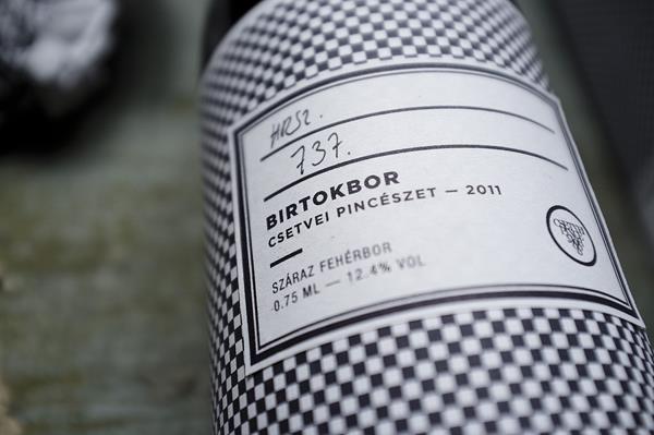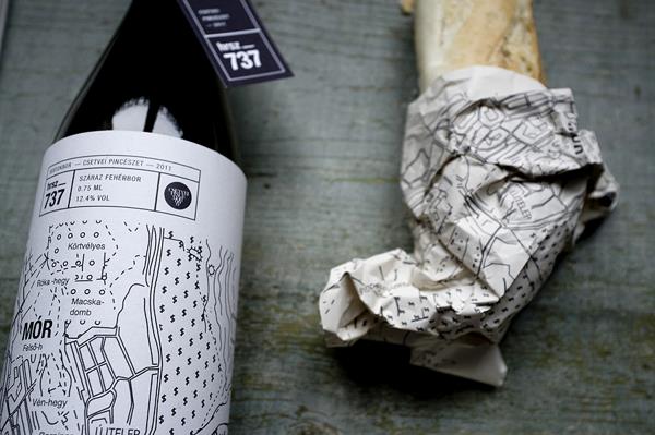 Hrsz. 737瓶子包装设计,包括有两款瓶子包装,一款是受是那老学院的黑白块型样的启发。另一款刚是葡萄园的原生地貌,就是很好的图形。