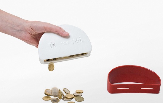 这个可以左右摇摆的存钱罐有两个投币孔和两个隔开的存储空间,哪边钱多了就会下沉,就像玩儿起跷跷板。可以用它存钱,也可以用它存储生活的美好,比如一个 人做了件值得表扬的事情就奖励他一枚硬币,沉得下去的最光荣!呃,其实可以同时准备两只,另外一个用来存恶事,做错一件事喂它吃游戏币!沉下去的最邪恶