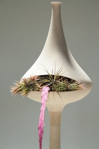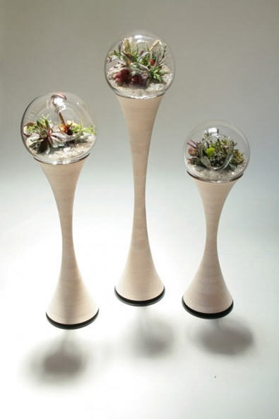 不管是实验室内还是实验室外,烧瓶,试剂瓶,试管是实验室的符号,代表着探索和创新。受到这些科学符号的启发,设计师Benjamin Hubert通过手工吹塑工艺打造出三款灯具。这三款灯可以吊在天花板上,也可以放在桌面上。灯泡安装在瓶口大号的软木塞上,是不是和实验室的瓶子一模一样。